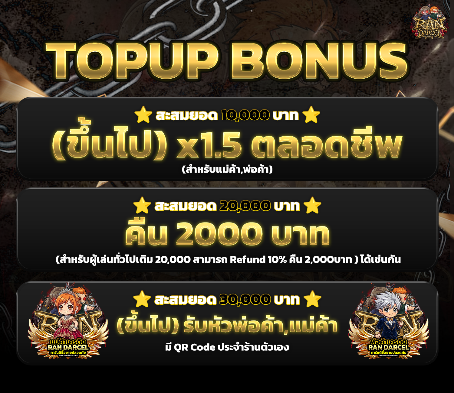💲 สะสมยอดรับสิทธิพิเศษมากมายประจำเซิฟเวอร์ RAN DARCEL